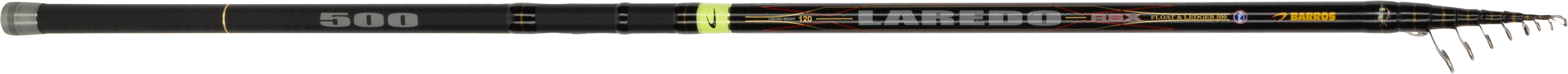 Cana telescópica, em carbono de alta resistência reforçado com 3 Way Carbon Wrap, montada com passadores Fuji KL - KT e porta carretos tipo plate. Com cinco metros de comprimento, a LAREDO RSX é uma cana para pescar com boias pesadas e/ou com chumbica, quer junto à água, quer em pesqueiros altos. A secção da ponta é em carbono extra reforçado, para lançar longe e aumentar a segurança no içar de peixes maiores.