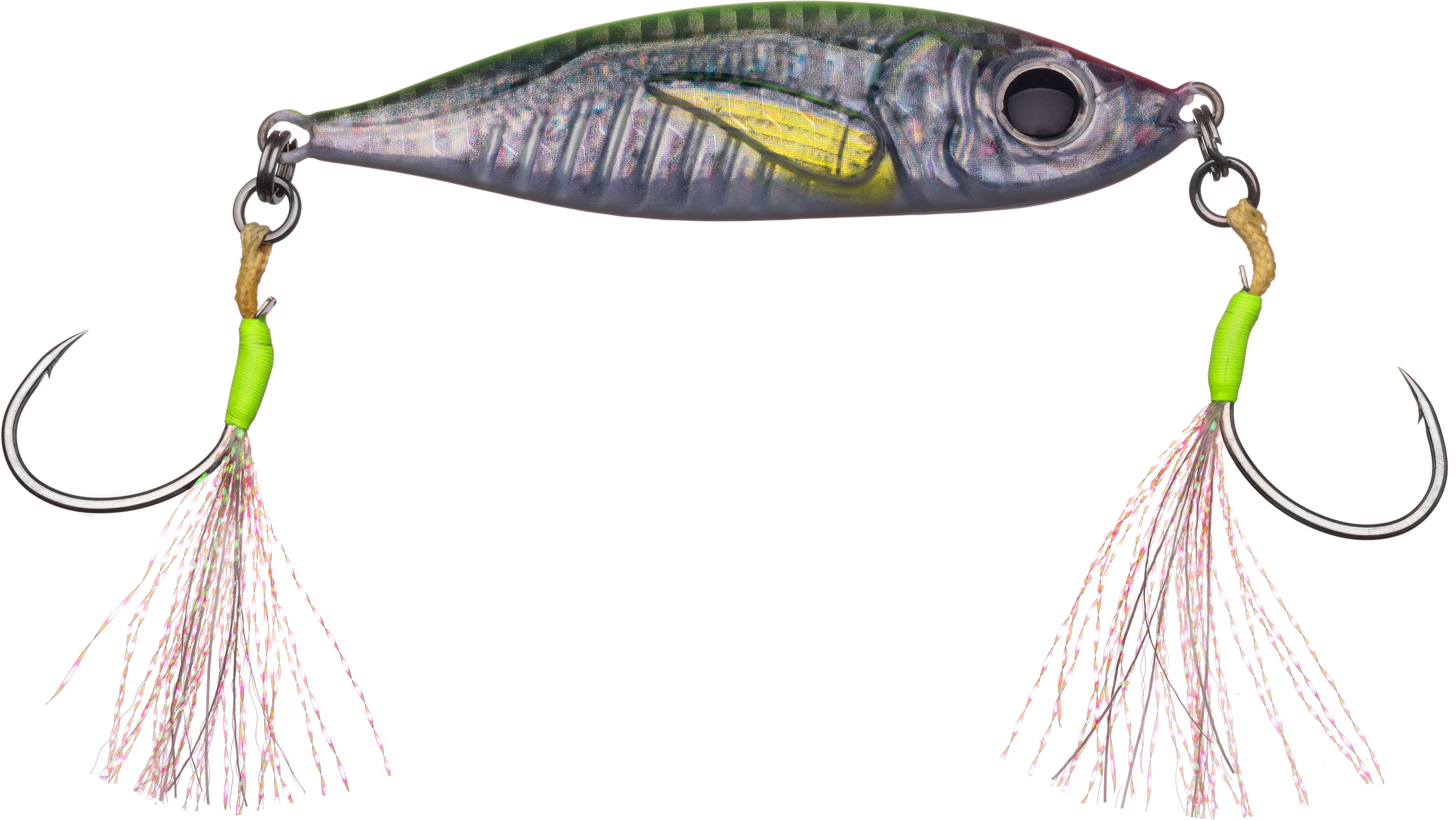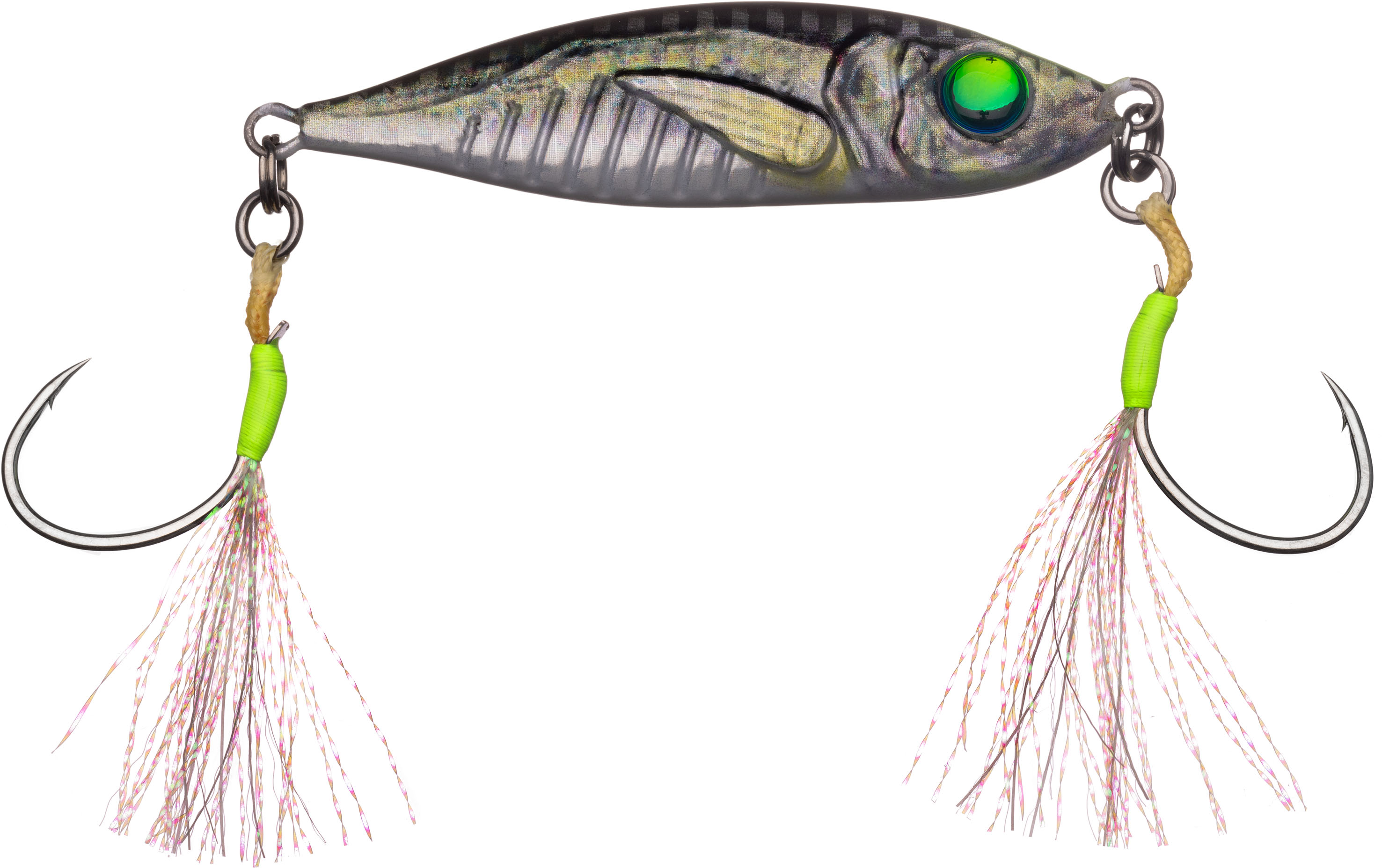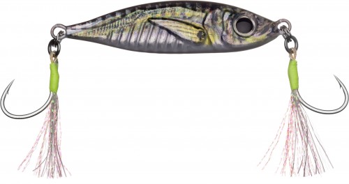 | Os jigs são, há muito tempo, as amostras mais usadas na pesca embarcada, principalmente quando se procuram predadores em águas mais profundas, nos estuários e em mar aberto. A utilização deste tipo de amostras, os casting jigs, pescando da costa, tem chamado cada vez mais adeptos, graças à sua enorme eficácia. A principal vantagem dos casting jigs, bem patente nesta série RF JIG, é, por um lado, a possibilidade de lançar amostras muito pequenas a distâncias dificilmente alcançáveis com amostras muito maiores e por outro lado, a capacidade de pescar com mares agitados, com os quais difícilmente se conseguiríam usar jerkbaits, stickbaits, ou amostras de vinil. As formas dos corpos, bem como o recurso aos dois assist hook montados nos RF JIG, proporcionam um nadar errático que, com pequenas animações, permitem pescar às mais distintas profundidades e condições de mar. A tecnologia de pintura 3D aplicada aos acabamentos dos RF JIG, dota-os de um aspeto incrívelmente real, com anormes semelhanças com um peixe verdadeiro. Disponíveis em 40g, 60g, 80g e 100g    |