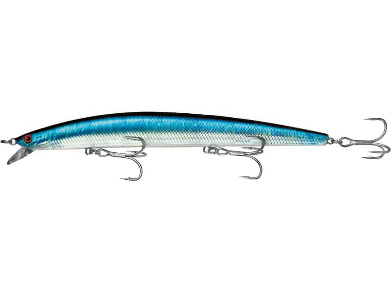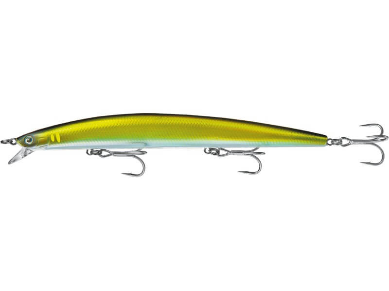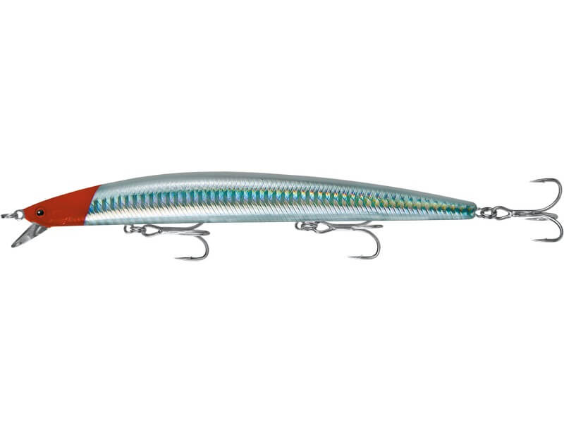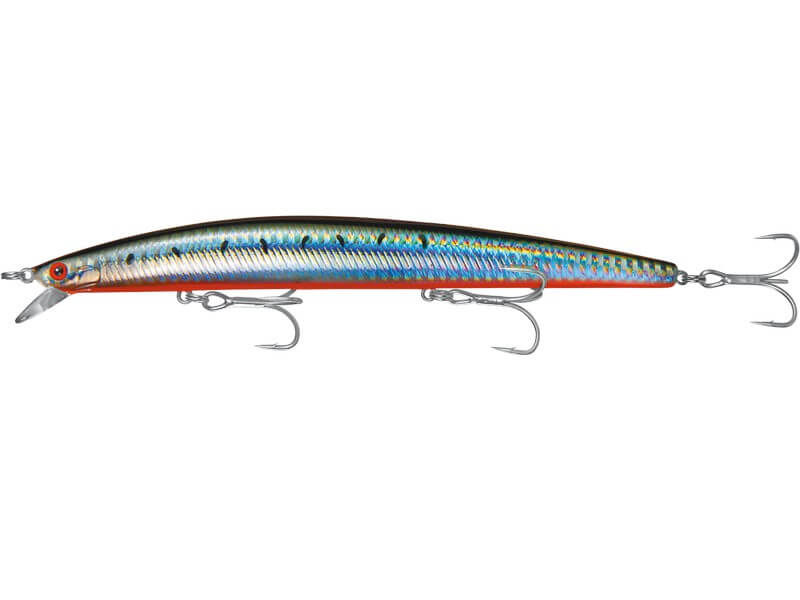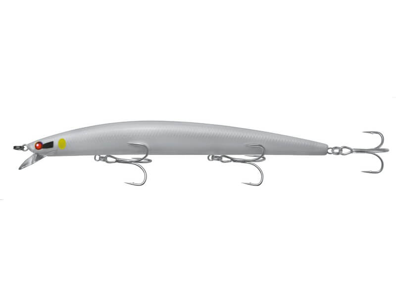 | Amostra extremamente eficaz para pescar robalos e outros predadores à superfície ou em suspending. A aerodinâmica aliada aos êmbolos interiores e um peso de 32g, proporcionam grandes lançamentos. A pintura UV em todas as cores da série, fazem desta amostra um isco fatal, principalmente na pesca ao amanhecer, entardecer e durante a noite. Equipadas com anzóis triplos ST-41, para melhor resistência e penetração.  |