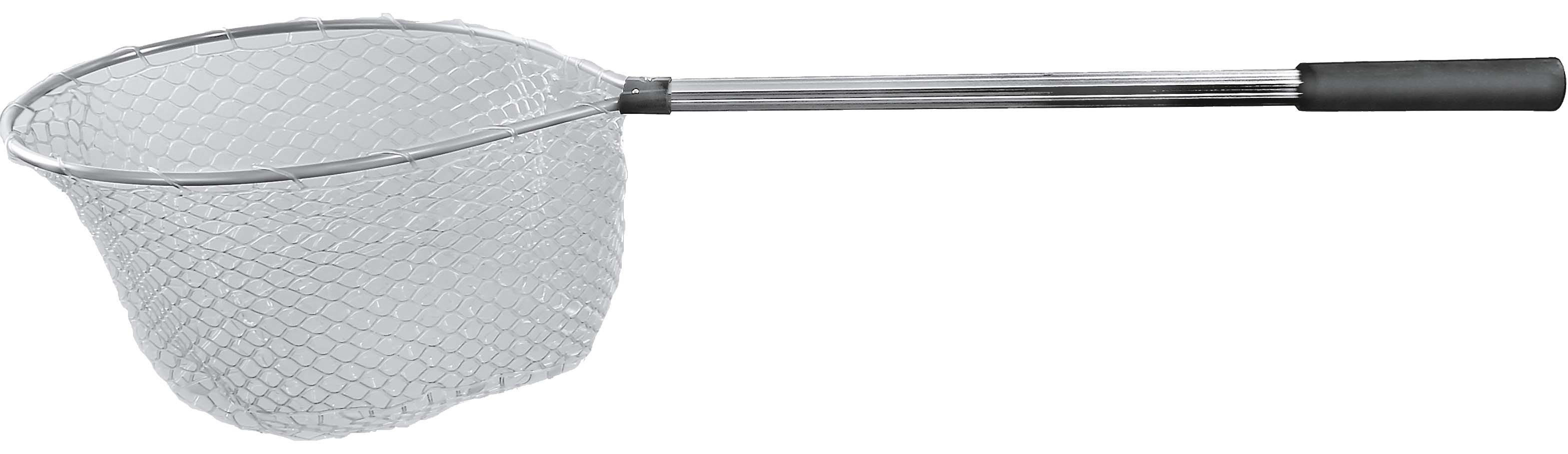 Camaroeiro com cabo em alumínio e punho em pvc preto. Boca em alumínio com rede em pvc transparente. Ideal para auxílio na captura de peixes e cefalópedes, quando em kayak, ou em embarcações pequenas.