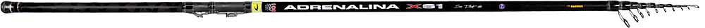 Eis a sucessora da icónica ADRENALINA, agora melhorada com montagem de passadores Fuji K-Fazlite. A versão X61, é uma cana em carbono de alto módulo reforçado com fita de carbono HMT de última geração. Criada para a pesca com boias de pião, tem o elemento da ponta mais duro e reforçado, consequentemente mais adequado aos lançamentos com boias pesadas, permitindo ainda o lançamento com a boia muito próxima da ponteira da cana.