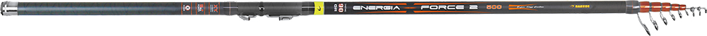 Cana telescópica em carbono reforçado com X-Carbon Yarn, muito robusta, e com ação de ponta. Com um teste de curva de 8Kg, esta cana foi especialmente concebida para pesca com boia de pião, em pesqueiros onde há necessidade de içar peixes grandes. A ENERGIA FORCE 2, vem equipada com porta carretos CAIXIN, montado em posição invertida, e passadores KL e KT, para pescar com linhas entrançadas.