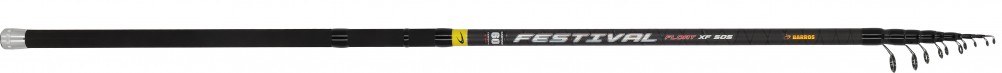 Cana telescópica em carbono entrançado, para usar em pescas de boia e chumbica. A FESTIVAL, que está disponível em 4.50m e 5.00m, tem manga antiderrapante no cabo, vindo equipada com passadores LV e porta carretos tipo plate.
