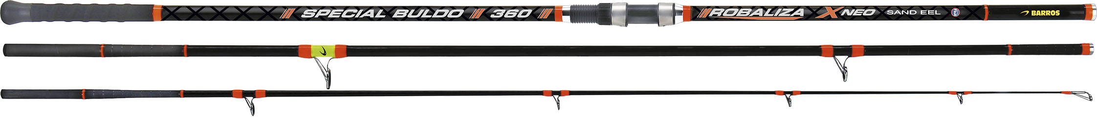 As canas para pesca à borracha, com buldo ou com chumbada, tendem cada vez mais a serem canas leves, finas, mais curtas que as tradicionais canas de 4.50m, e de três secções. A ROBALIZA X-NEO, inspirada na ROBALIZA SAND EEL, é una cana em carbono entrançado com x-carbon yarn, em três secções, indicada para pesca com buldo e/ou chumbo até 120g, em praias, molhes e na costa em geral. Com a performance característica das canas de três partes, com a ROBALIZA, os pescadores de robalos têm ao seu dispor uma cana de fácil transporte, sem recurso a um modelo de cana telescópica. Com punho e encaixes antiderrapantes, esta cana vem equipada com porta carretos Fuji DPSSD e passadores Fuji KW. Disponível em 3.60m e 3.90m, a ROBALIZA X NEO permite lançar um máximo de 120g, sendo o melhor desempenho conseguido com pesos entre 60 e 120g.