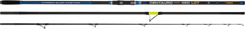 Cana de três secções, em carbono, com ponteira tubular e com o cabo com reforço hooven carbon. A CENTAURO LCT, com 4.20m de comprimento total vem montada com porta carretos DPS e com passadores Fuji LC LOW RIDER, para pescar com linha monofilamento, ou com linha entrançada. Esta cana para pesca de surf casting tem capacidade para lançar chumbadas até 250g. O melhor desempenho de lançamento á alcançado com chumbadas de 120 a 150g.