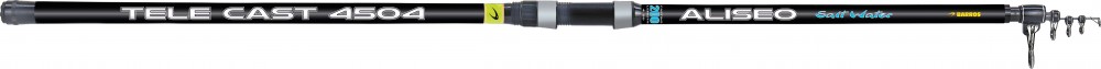 Cana telescópica, em composto de carbono, para pescas de fundo, no mar e em estuários. Porta carretos tubular e passadores WM antichoque.