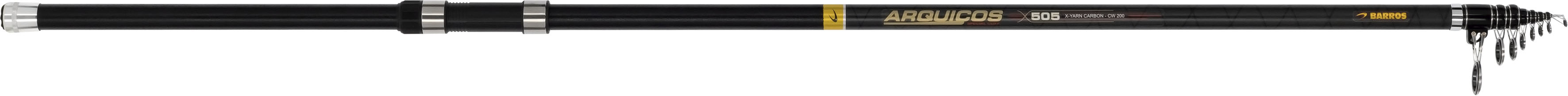 Cana em carbono, reforçada com X-Carbon Yarn, montada com passadores WM antichoque e porta carretos DPS-ZS. Esta cana de 5 secções, como tem 5.00m de comprimento, é uma excelente opção para quem pesca em falésias altas, com chumbada ou com boias pesadas. A ARQUIÇOS tem capacidade para lançar até 200g.