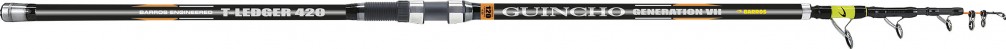 Esta nova geração da icónica GUINCHO é uma cana telescópica com quatro secções em carbono, montada com passadores KW e dois passadores WM, de correr, no elemento tubular da ponta. O porta carretos DPS tubular ajuda a uma boa fixação do carreto. A GUINCHO GENERATION VII é uma cana muito fina para ser usada em pescas de lançado ligeiro, na costa rochosa, nos molhes e pontões, no mar e em estuários, tendo capacidade para lançar até 120g.