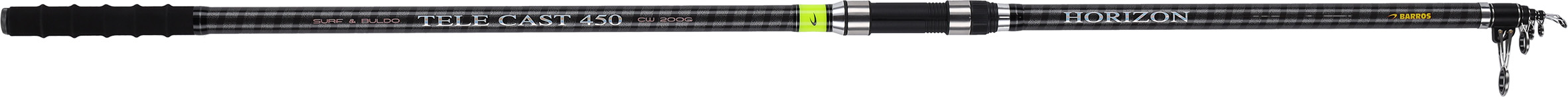 Cana em carbono reforçado com uma fita de kevlar, aplicada em espiral. A HORIZON TELE CAST é uma cana muito versátil e fina, para pesca de fundo e também com buldo.Passadores antichoque em PVC e punho ergonómico em EVA anti-derrapante.