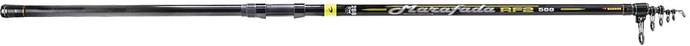 Cana telescópica em carbono 90 graus, ídeal para pesca das rochas, particularmente indicada para pesca nas falésias. A Marafada é a cana certa para pescar sargos, douradas e robalos, nos pesqueiros altos da costa ibérica. Como qualquer cana para pescar em pesqueiros altos, vem equipada com um porta carretos ajustável, o qual permite posicionar o carreto em qualquer zona do cabo. Com ação rápida, é uma cana rija, capaz de lançar 250g e vem equipada com passadores pvc antichoque.