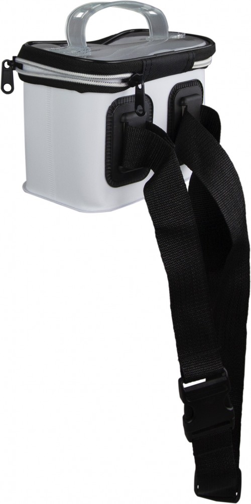 | Bolsa para iscos, em EVA branco, para usar à cintura (cinto incluído). Esta bolsa é extremamente útil para transportar caranguejo, sardinha, camarão e outros iscos, principalmente em pesqueiros onde não é possível ter o restante material perto do pescador.   - Altura: 13cm